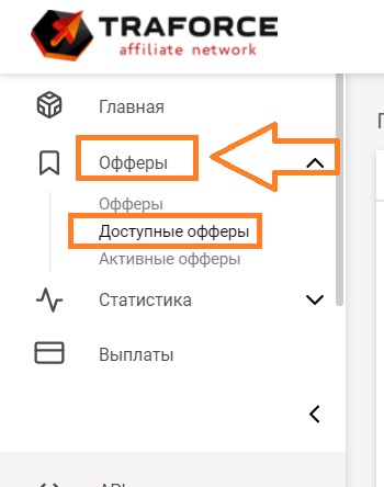 и открываем раздел: "Доступные офферы"