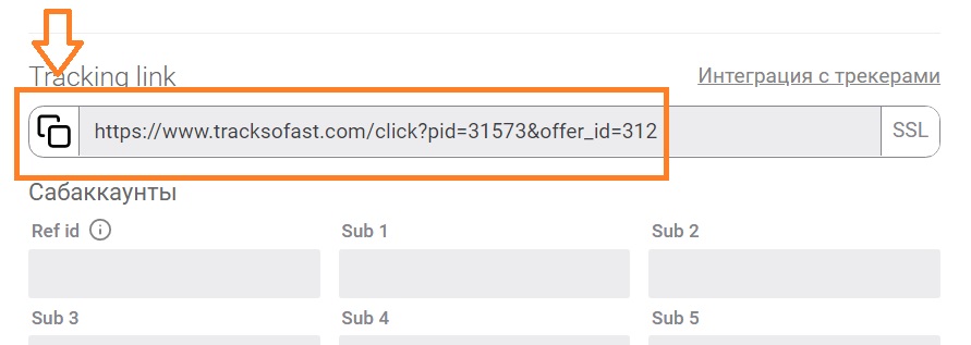 Внизу этой страницы найдите ссылку на оффер и скопируйте её в буфер обмена:
