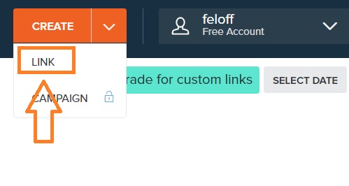 Вверху справа наводим курсор мыши на кнопку: CREATE и выбираем: LINK
