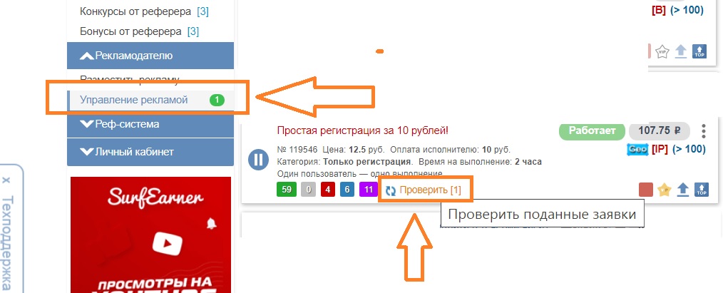 На данном буксе - я создаю оплачиваемые задания, среди которых, - регистрация по моей ссылке на оффере № 110. За каждое качественно выполненное задание - я оплачиваю исполнителю 12.5 рублей а в итоге зарабатываю 1.05 USD, что по курсу составляет на данный момент: 74 рубля. Мой чистый доход составляет: 61.5 рублей с каждой регистрации.