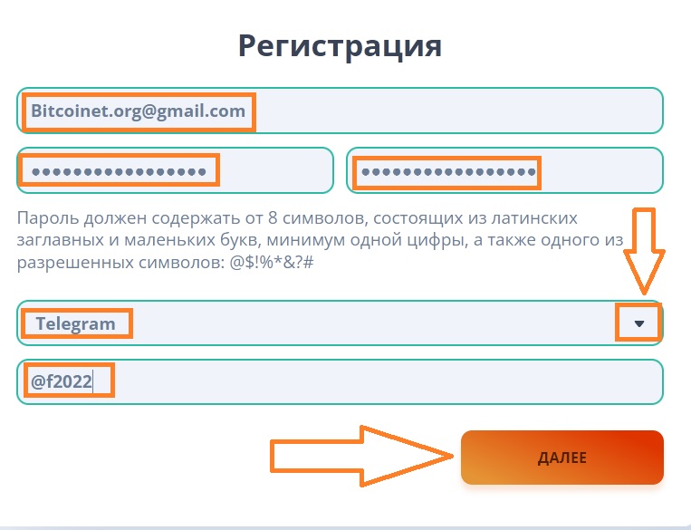 4) Внизу формы - жмите "ДАЛЕЕ"