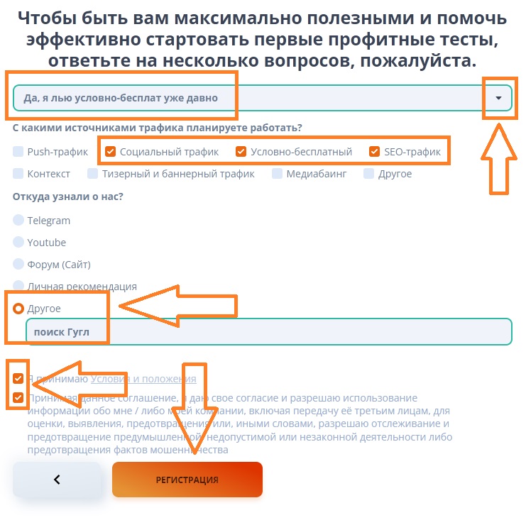 4) Поставьте две галочки напротив соглашений и жмите кнопку: Регистрация