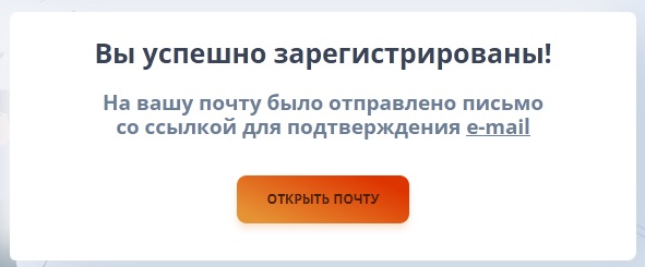 После этого вы увидите уведомление о успешной регистрации - откройте свою почту -перейдите по ссылке, и выполните вход в свой личный кабинет.
