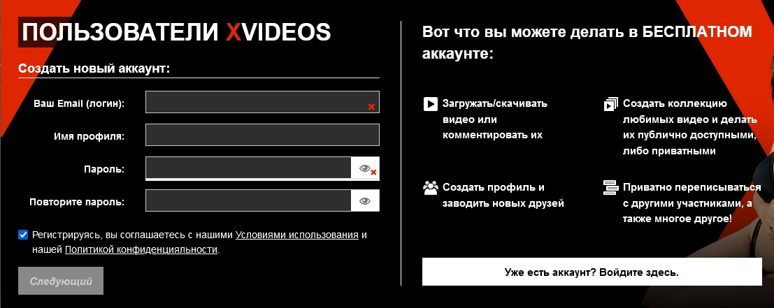 РЕГИСТРАЦИЯ НА XVIDEOS.COM