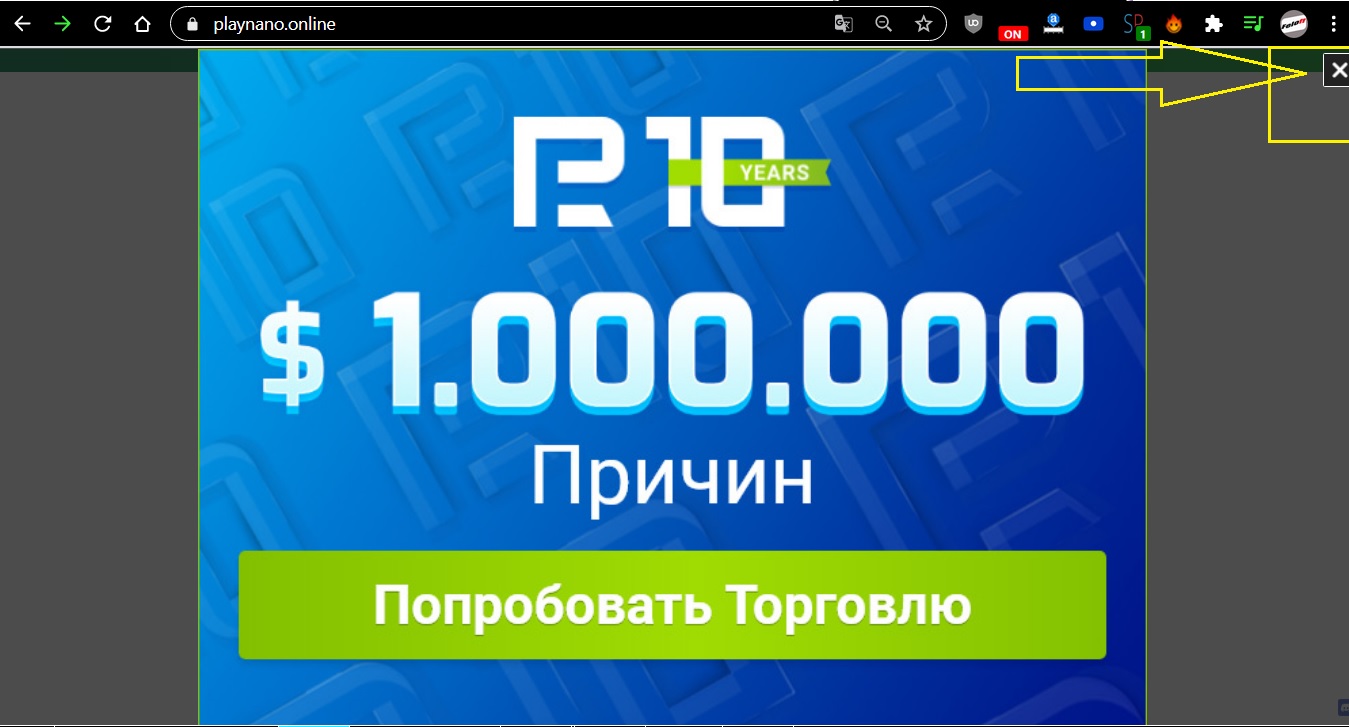жмём комбинацию: Alt и R и медленно передвигаем курсор мыши в правый верхний угол, наводим его на крестик и закрываем рекламный баннер, как показано на скриншоте ниже: