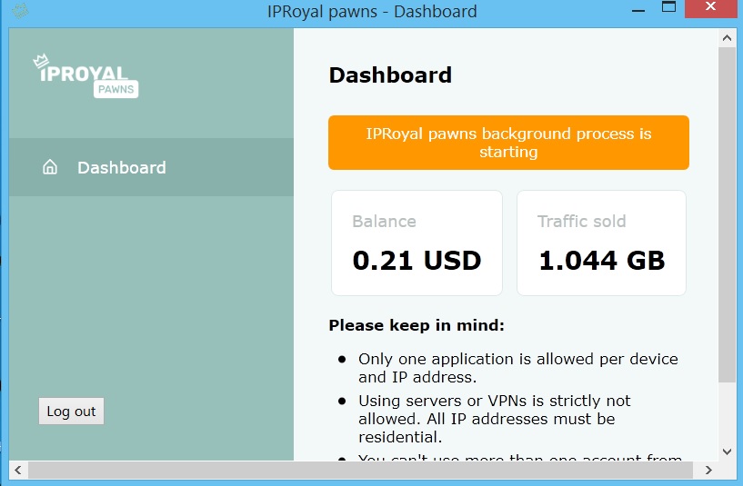 >> Запустите приложение IPRoyal Pawns, которое безопасно разделяет ваше интернет-соединение без доступа к личным данным. >> Мы используем ваше соединение для сбора информации из Интернета. Вы можете проверить бизнес-кейсы, чтобы увидеть более подробное объяснение.Компании используют эти собранные биты для различных услуг. Сколько можно зарабатывать с IPRoyal? Ваш доход будет зависеть от объема трафика (в ГБ), который вы разделяете с сетью IPRoyal. Чем больше данных вы делитесь, тем больше зарабатываете! Наши пользователи могут зарабатывать от 5 до 140 долларов в месяц в среднем только за то, что наше приложение остается активным на устройстве. Сейчас мы платим 0,20 доллара США за 1 ГБ. Ваш заработок в основном зависит от того, сколько устройств вы подключили к разным IP-адресам. Общее правило заключается в том, что чем больше IP-адресов вы подключены, тем больше вы заработаете!