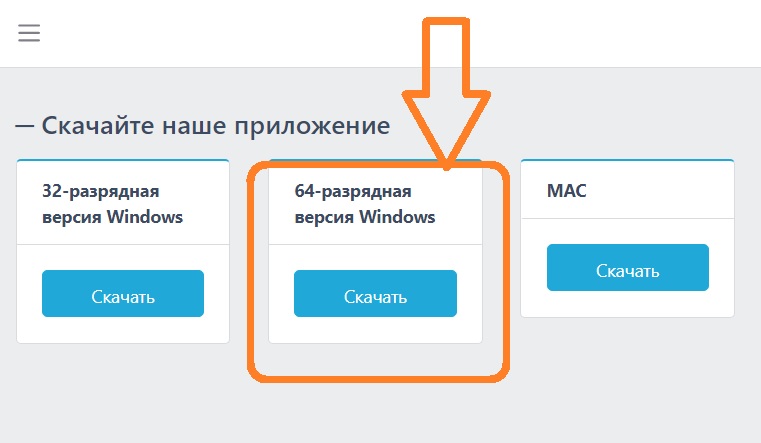 Далее выберите свою операционную систему (более распространённая Windows 64-х битная) жмите "Скачать" и сохраните файл в удобном для вас месте.